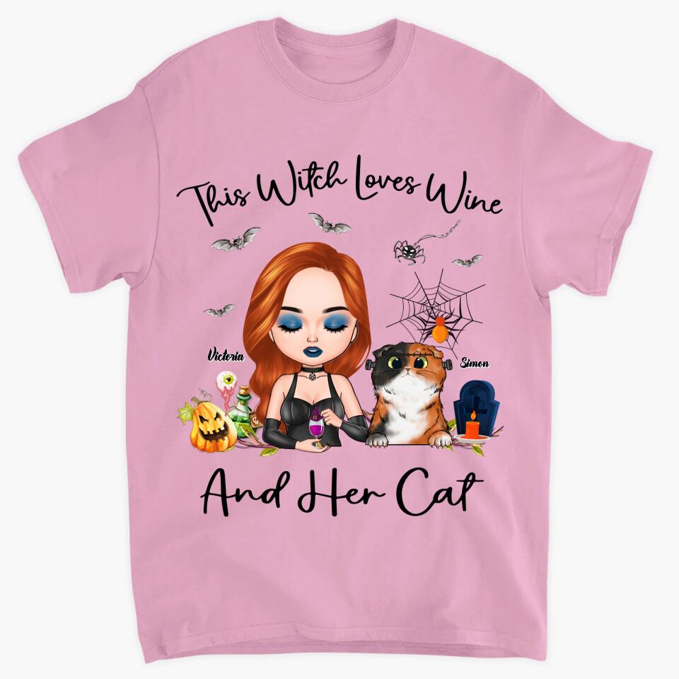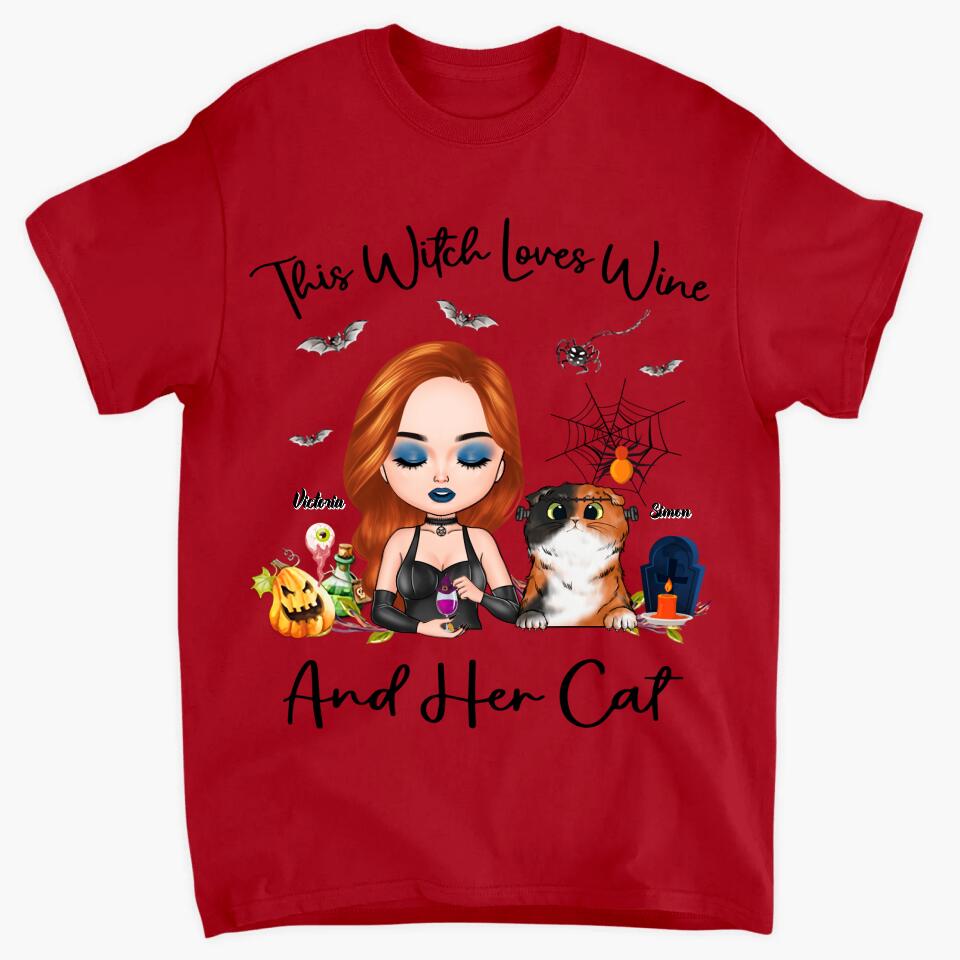 Personalized T-shirt - Gift For Cat Lover - This Witch Loves Wine And Her Cat