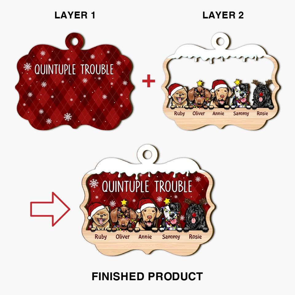 Personalized Layer Wood Ornament - Gift For Dog Lover - Double Trouble ARND037