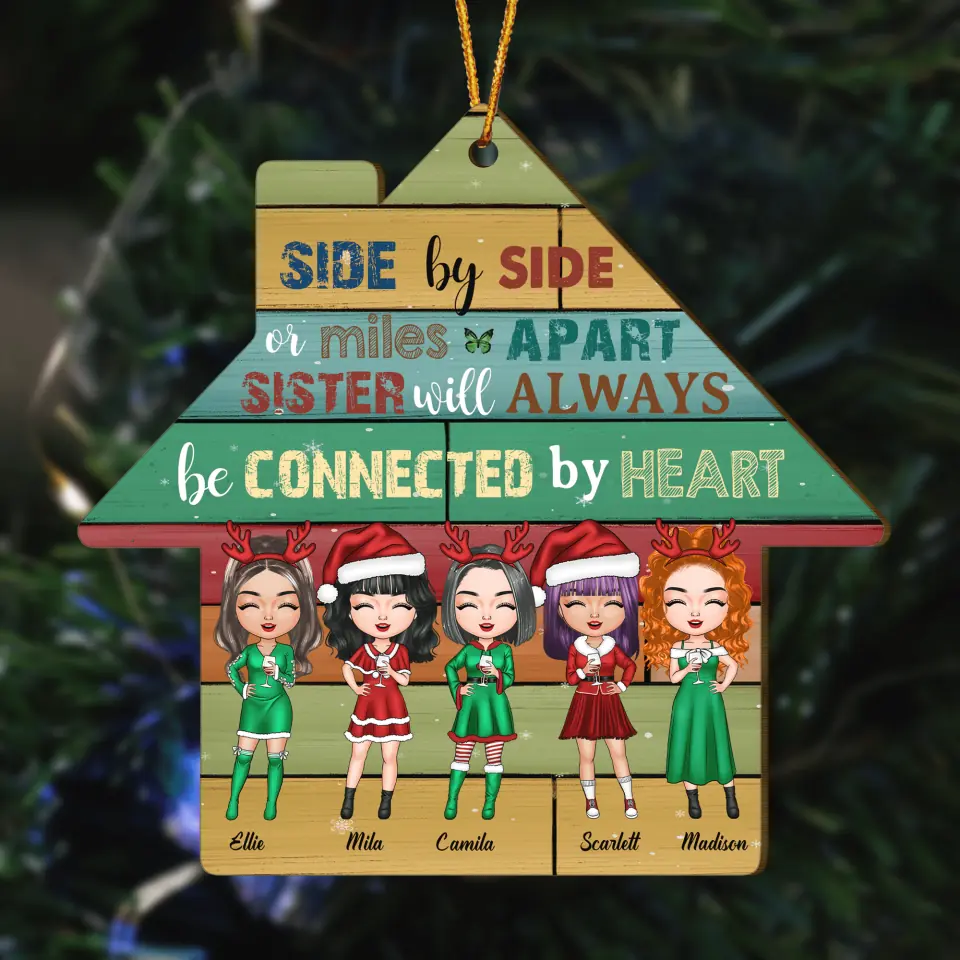 Personalized Wood Ornament - Gift For Sister - Side By Side Or Miles Apart Sisters Will Always Be Connected By The Heart