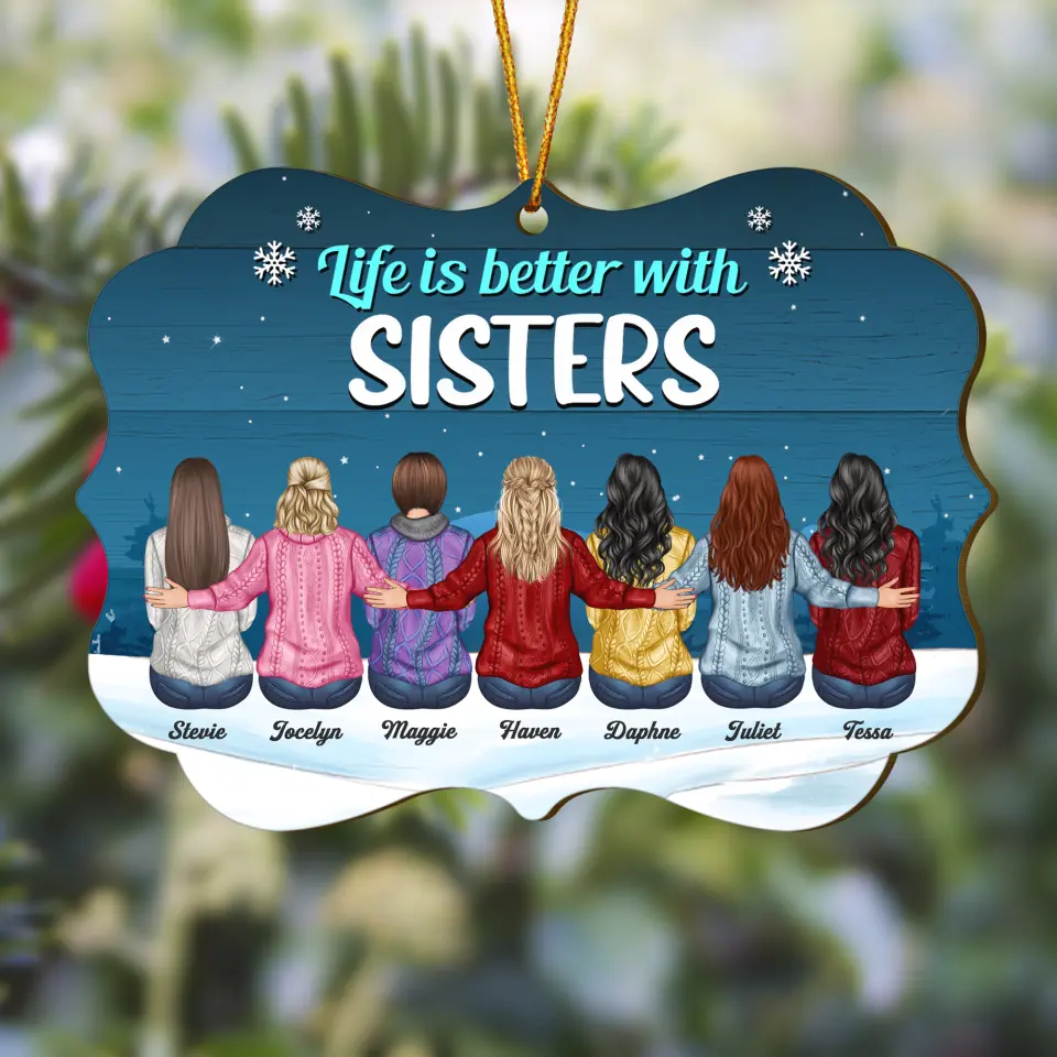 Personalized Wood Ornament - Gift For Sister - Life Is Better With Sisters ARND037