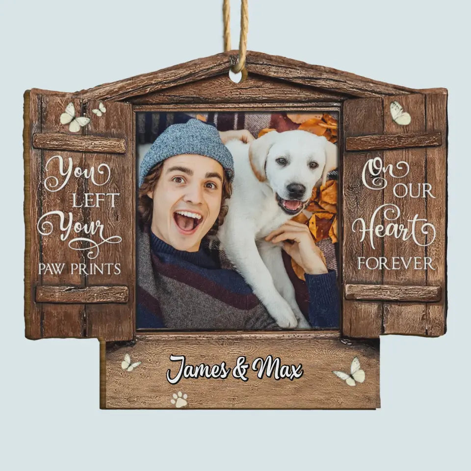 You Left Your Pawprints On Our Heart Forever - Personalized Custom Wood Ornament - Christmas, Memorial Gift For Pet Mom, Pet Dad, Pet Lover, Pet Owner