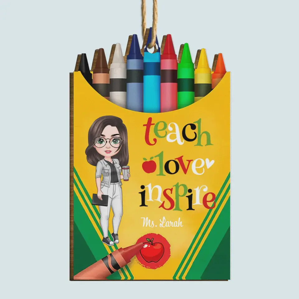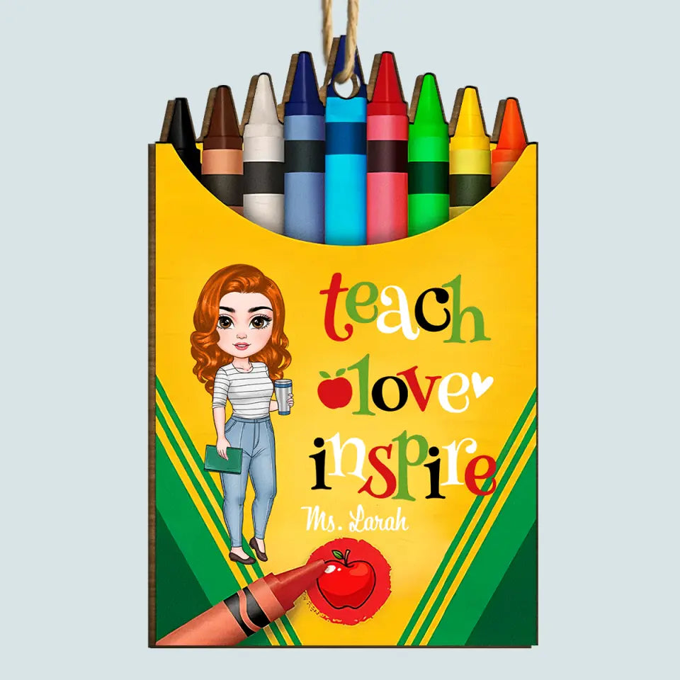 Teach Love Inspire - Personalized Custom Wood Ornament - Christmas, Teacher's Day, Appreciation Gift For Teacher