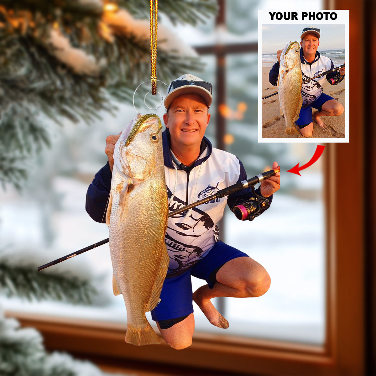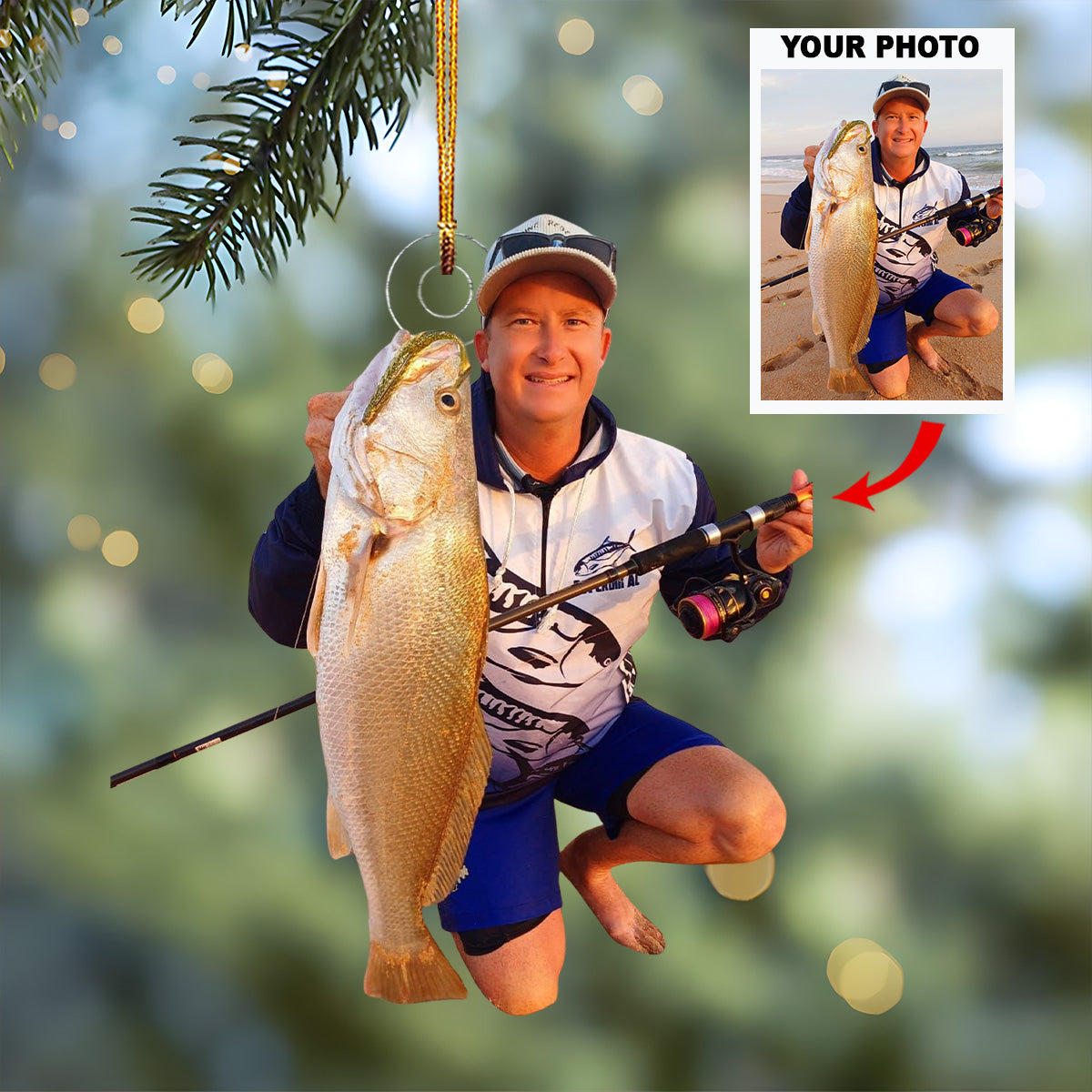 A Big One - Personalized Photo Mica Ornament - Gift For Fishing Lovers, Family Members