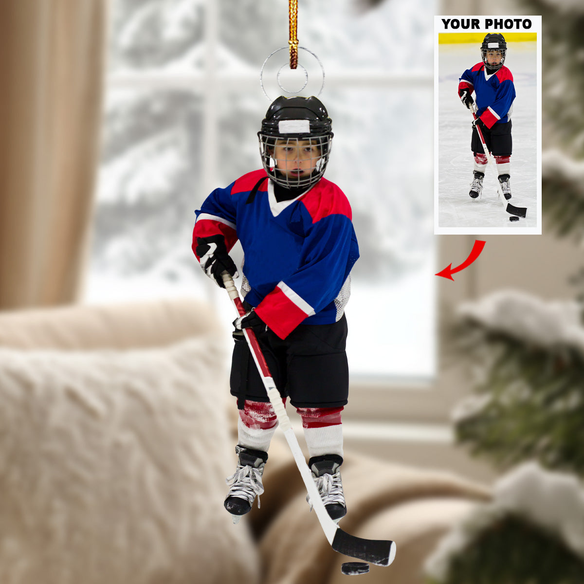 A Little Ice Hockey Player - Personalized Photo Mica Ornament - Christmas Gift For Sport Lovers, Family Members