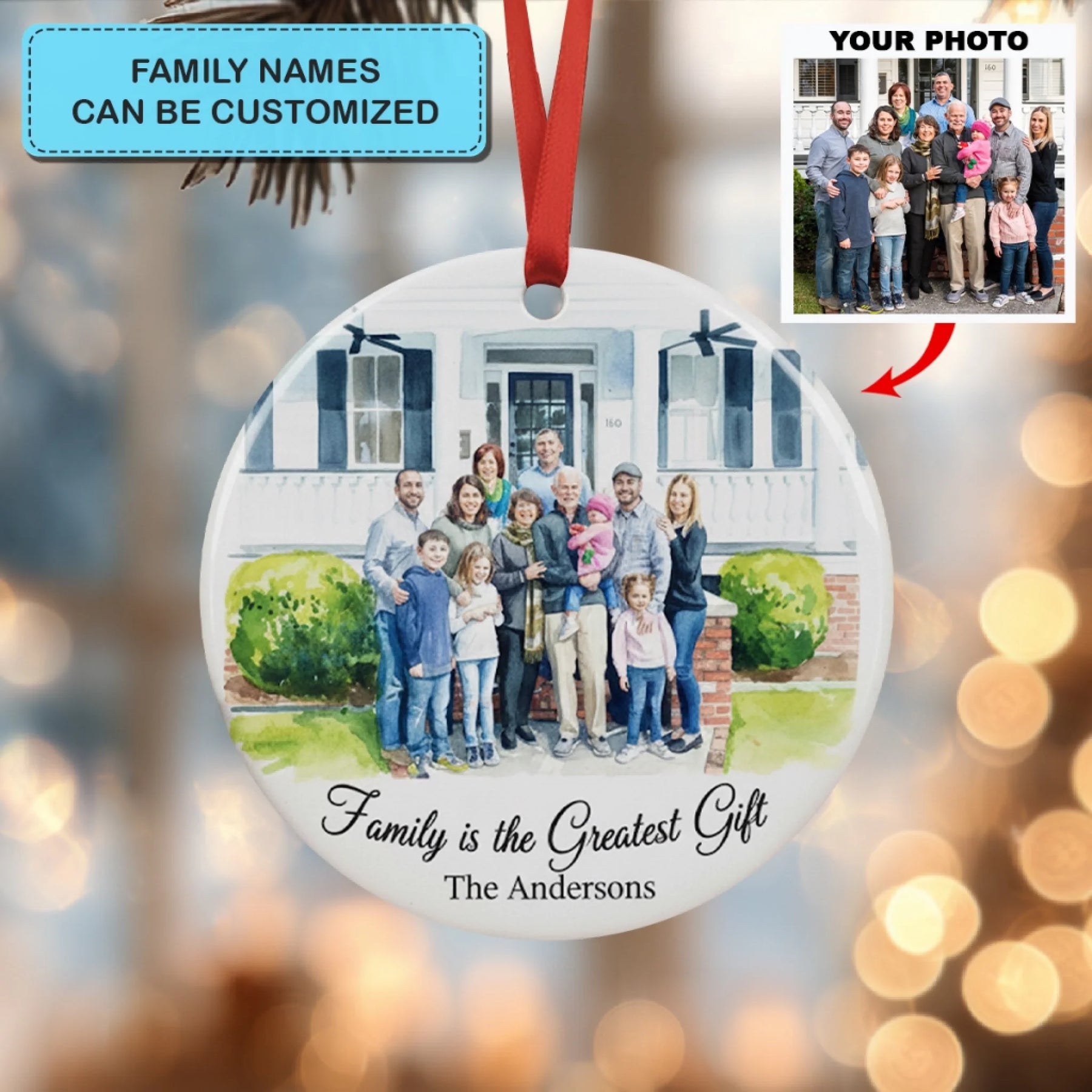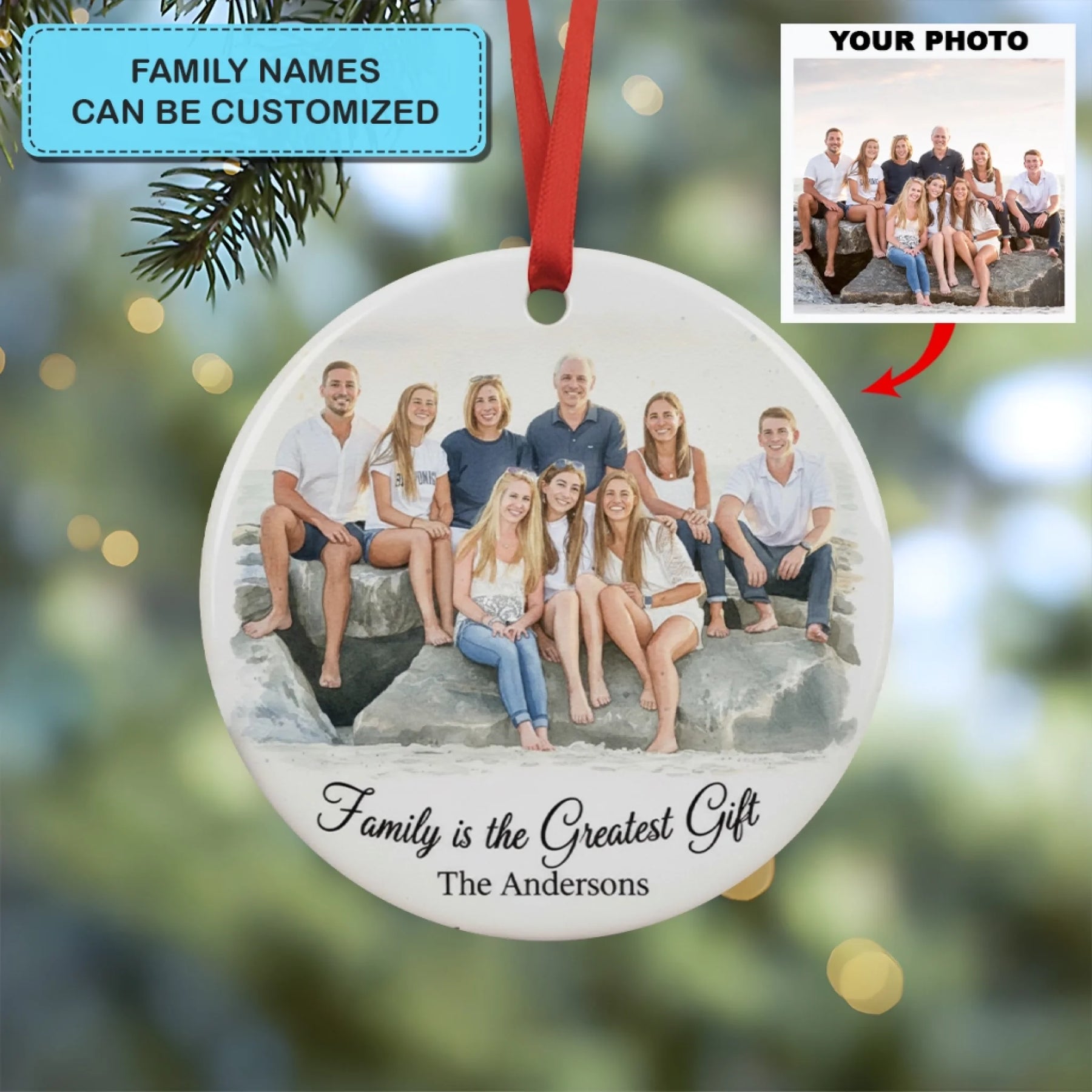 Family Is The Greatest Gift - Personalized Custom Ceramic Ornament - Christmas Gift For Family Members AGCDH001