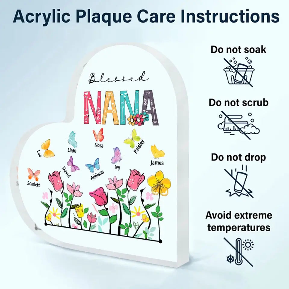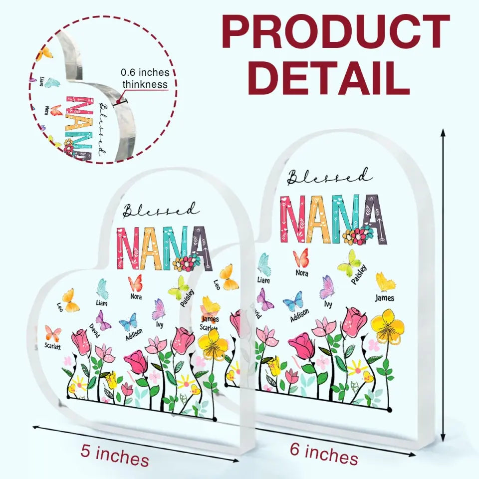 Personalized Custom Heart-shaped Acrylic Plaque - Mother's Day, Birthday Gift For Grandma - Blessed Grandma Butterfly