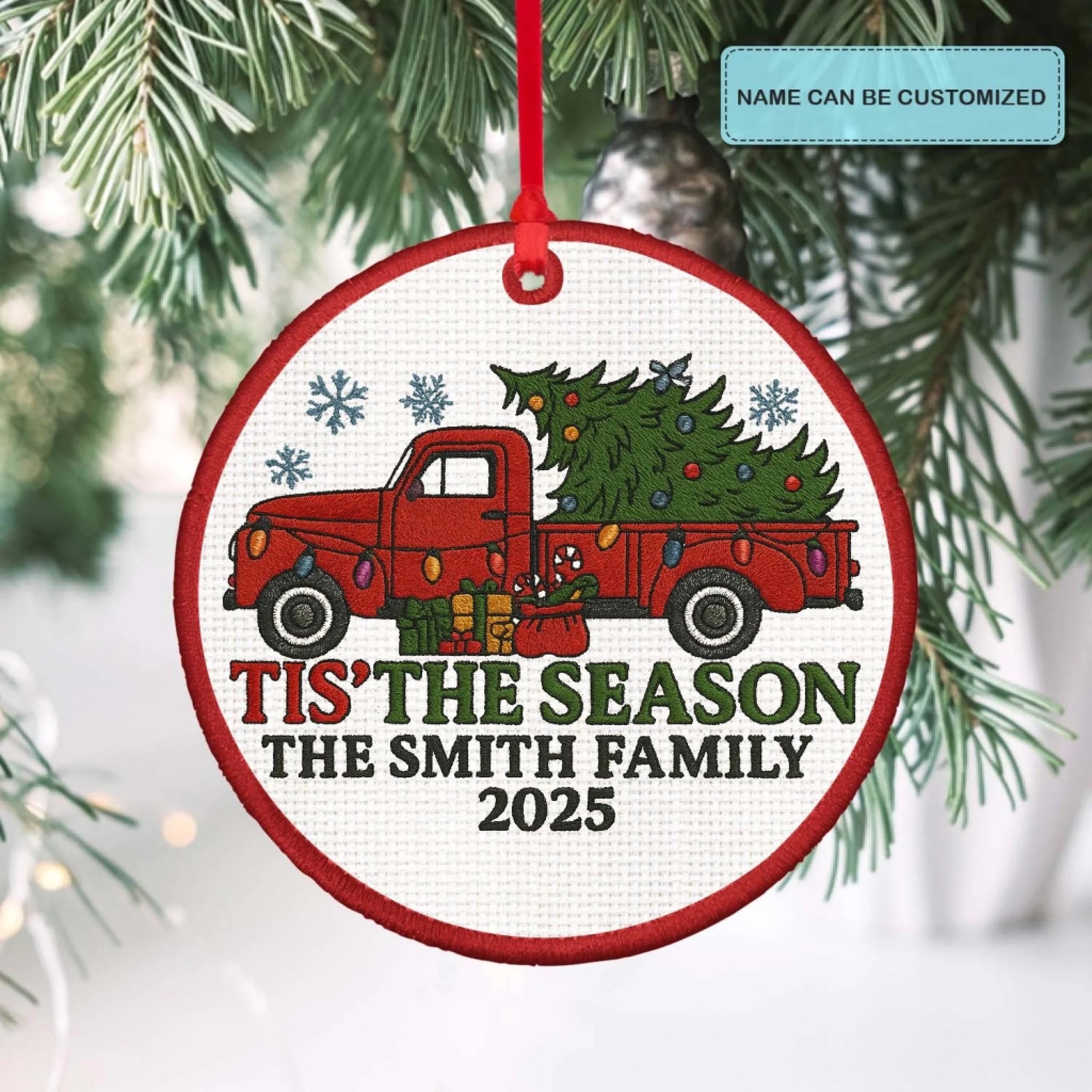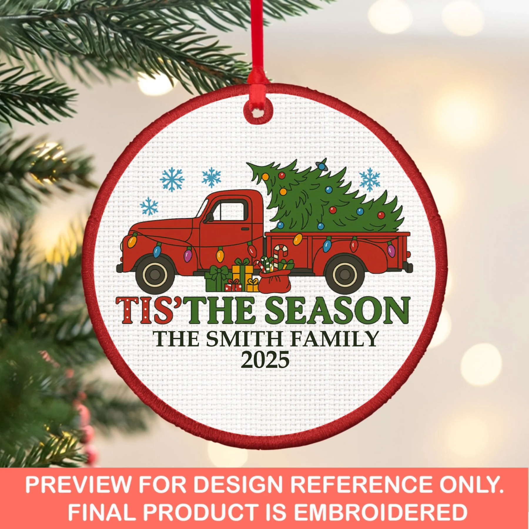 Personalized Embroidered Ornament - Tis' The Season - Gift For Family Members