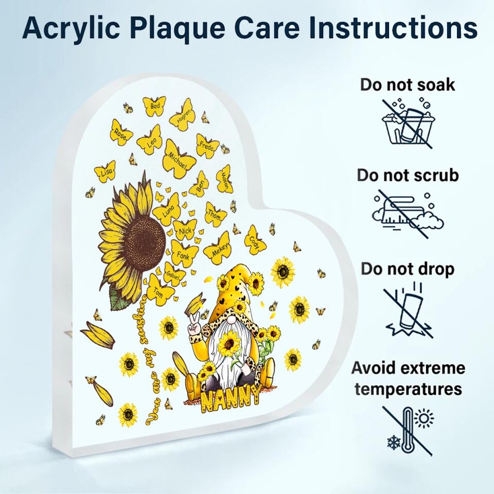 Personalized Heart-shaped Acrylic Plaque - Gift For Grandma - Gnome Nana Sunflower ARND037